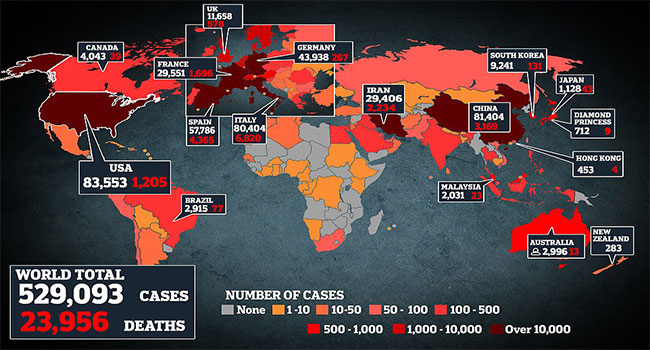 আর বিশ্বজুড়ে এই ভাইরাসে আক্রান্তের সংখ্যা ৫ লাখ ছাড়িয়ে গেছে।