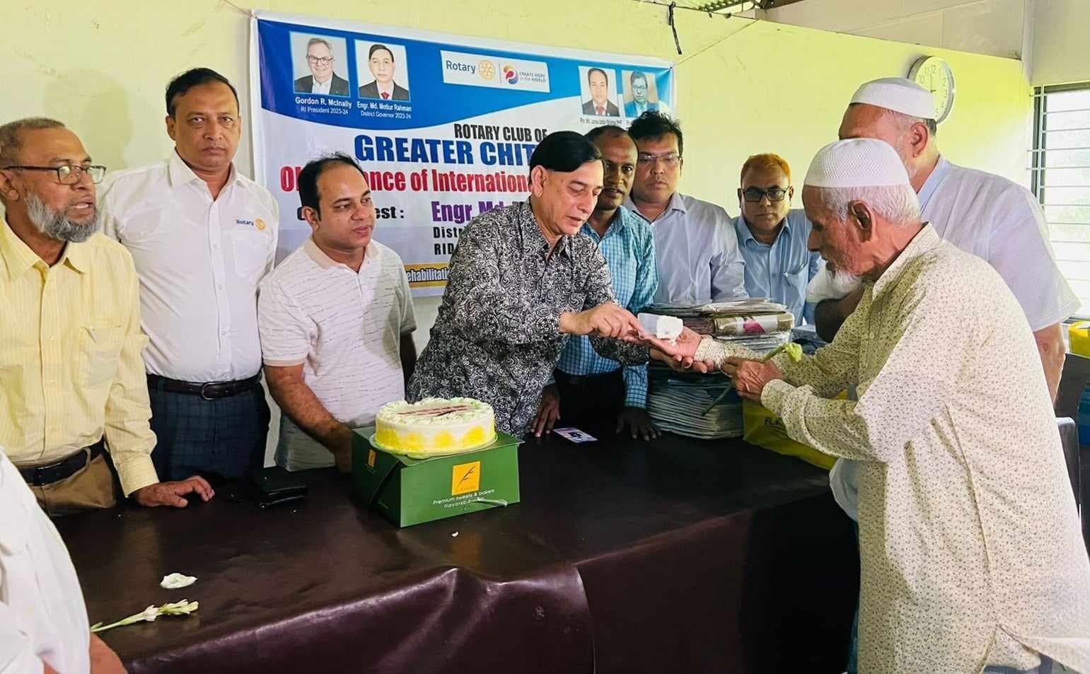 বিশ্ব প্রবীণ দিবস উদযাপন উপলক্ষে প্রবীণদের নিয়ে কেক কাটা হয় এবং প্রবীণদের ফুল দিয়ে বরণ করে নেয়া হয় । তাঁদের মধ্যে খাদ্য সামগ্রী ও বস্ত্র বিতরণ করা হয়। প্রবীণরা রোটারীয়ানদের কাছে পেয়ে ধন্যবাদ জানান।